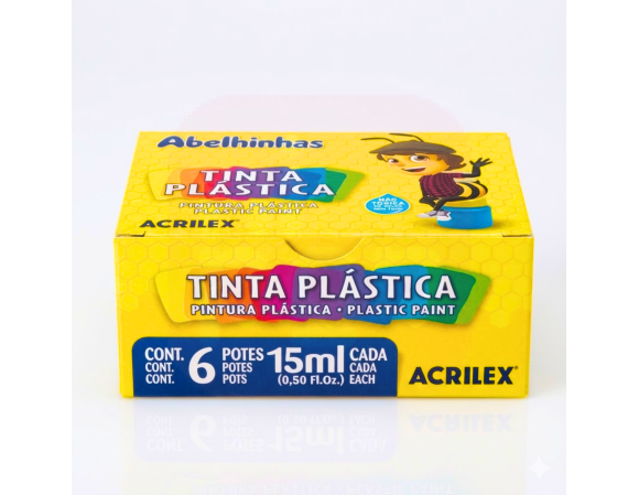 A Tinta Plástica 15 ml (C/6) é ideal para atividades escolares, trabalhos artísticos e projetos de artesanato. Com cores vibrantes e boa cobertura, é fácil de aplicar e perfeita para estimular a criatividade de crianças e iniciantes em pintura.