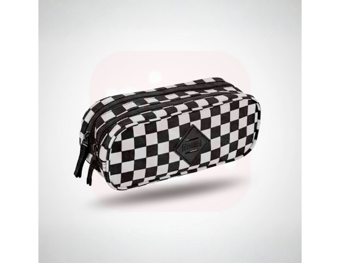 2. Estojo 2 Compartimentos Xadrez Preto e Branco - Sestini